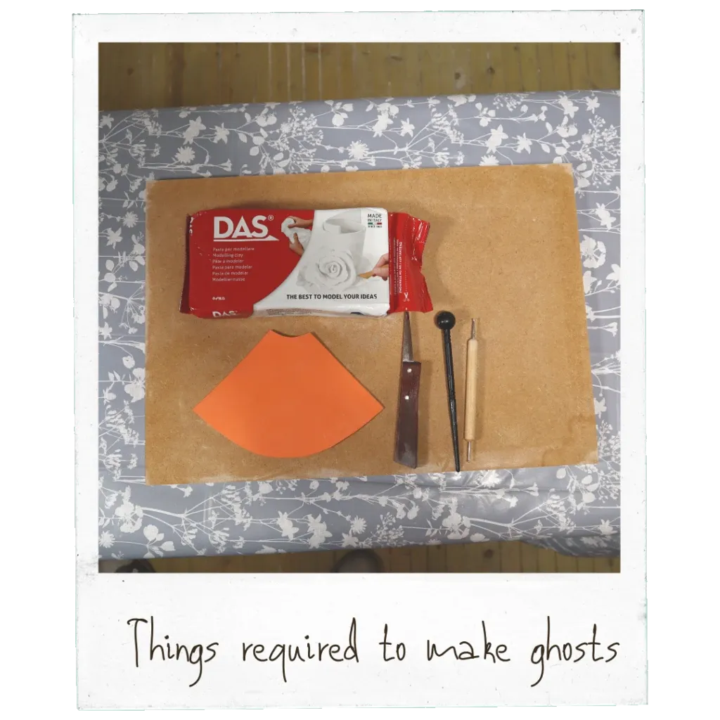 Now for the magic, you’re going to conjure up ghosts from the flat sheet of air dry clay!