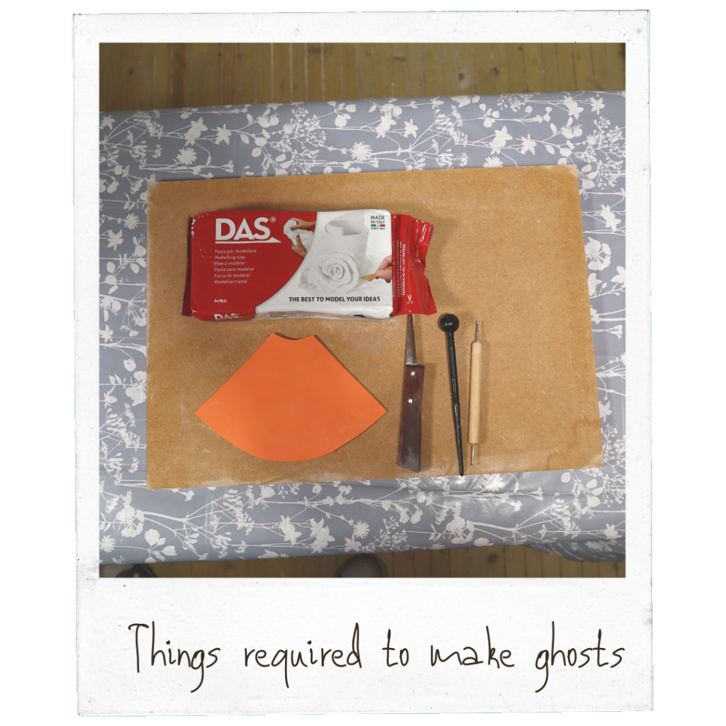 Now for the magic, you’re going to conjure up ghosts from the flat sheet of air dry clay!